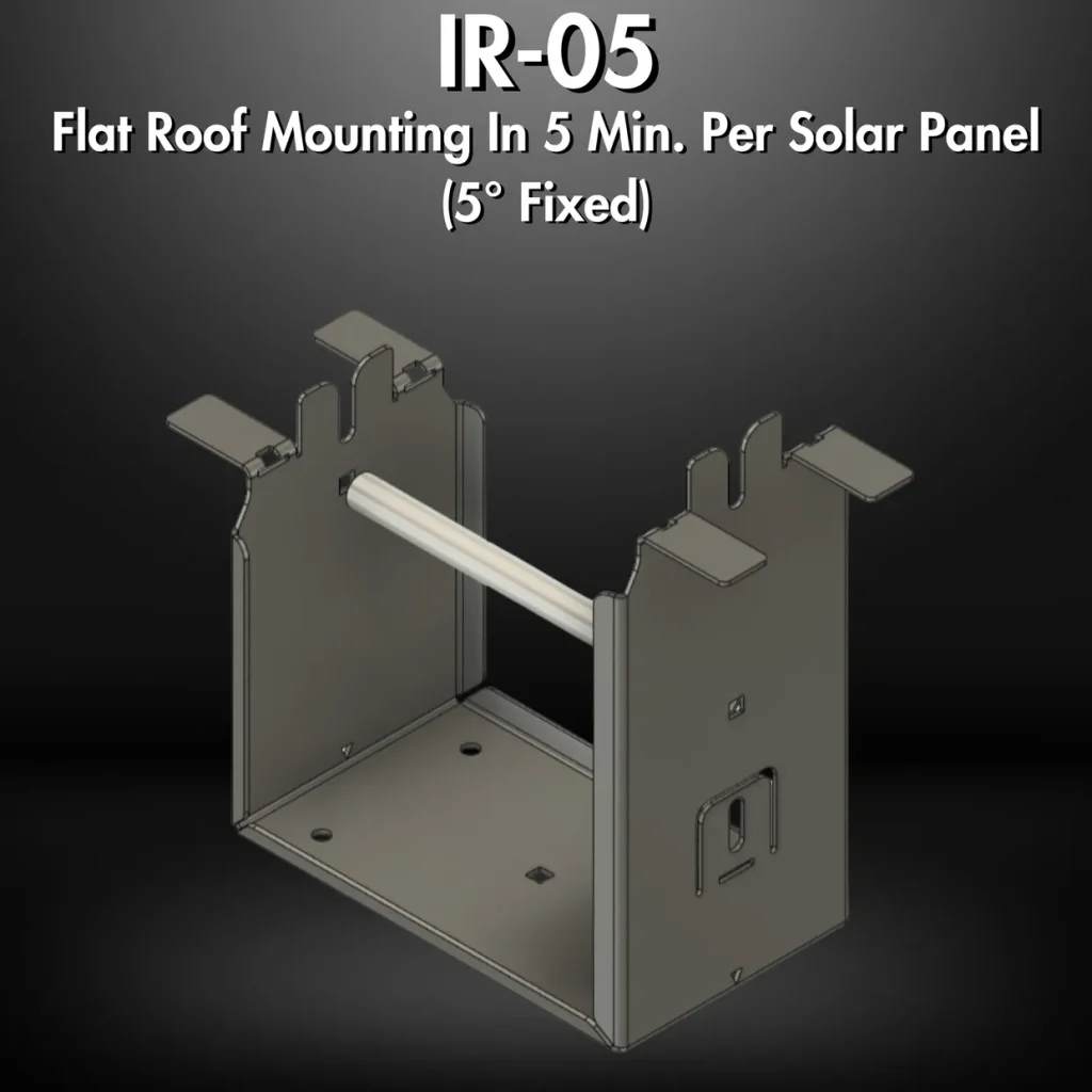 The IR-05 BallastBase Flat Roof Mount is the fastest, strongest, and most cost effective 5 degree ballast system on the market. Each mount can be assembled in less than 30 seconds, and modules can be mounted in under a minute, for lightning fast installation times! This system offers multiple mounting options to work for any job while being capable of racking solar modules of up to 700 Watts, even with no roof penetration. Our IR-05 is designed to clamp around a standard cinder block and the integrated handle allows one person to carry and place multiple IR-05s with weight without the fatigue caused by other ballasted basket type systems. If your project requires less weight on the roof, this mount can also be installed with deck screws or our own IntegraGel Industrial Strength Adhesive.