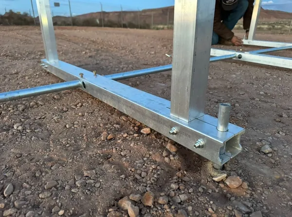 The IR AnchorSpike™ Kits include a set amount of specially designed barbed aluminum spikes and a super strong two part epoxy. The IR AnchorSpikes have a hollow structure with open barbs that allow the epoxy to flow deep into the soil and create a solid anchor rated for up to 1,000 pounds of uplift per spike. Once in place, each BallastRack frame is designed to clamp onto two AnchorSpikes when the carriage bolts at the ends are tightened, which allows for fast and easy leveling of the system.