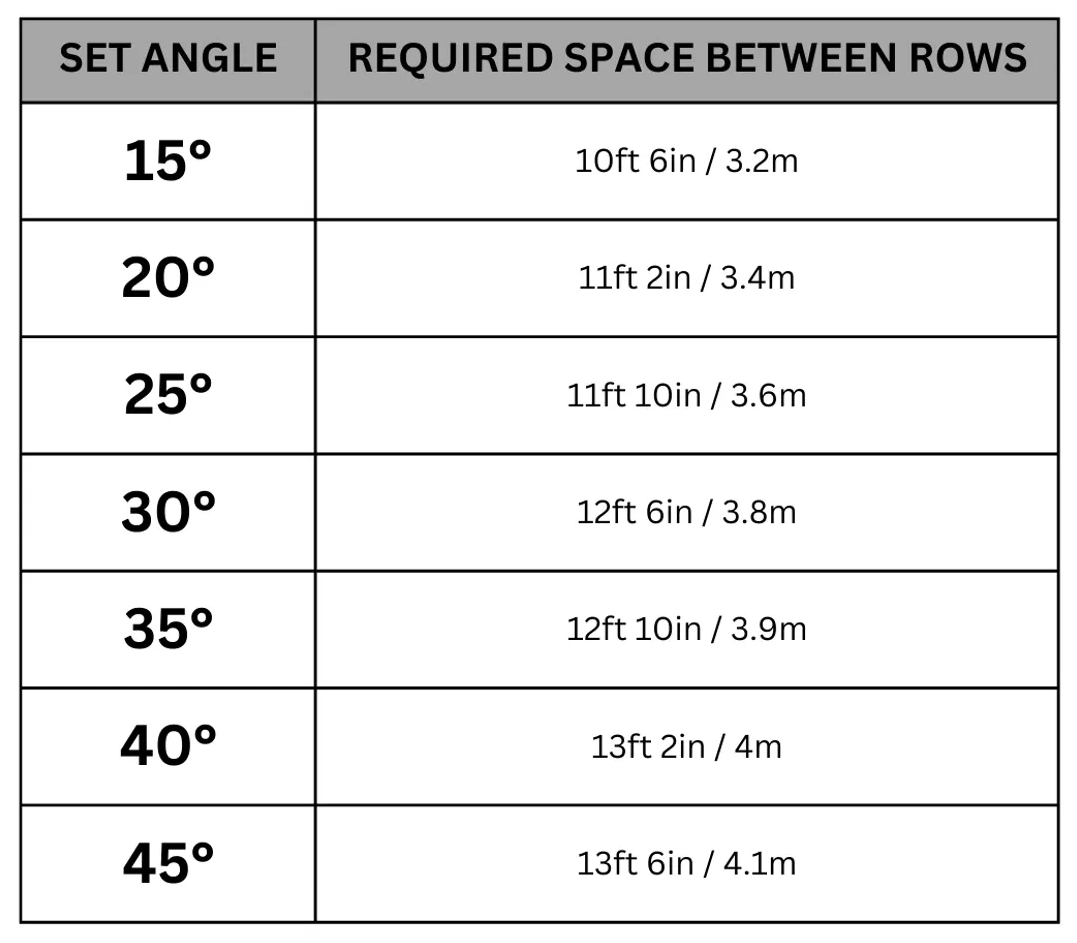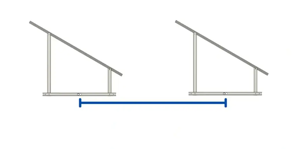 The measurements listed above are from the center point of each base tube from one row to the next (see example below) *IR-45 should be spaced according to the maximum sun angle you plan to use