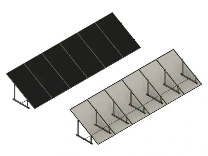 45° Universal Ground mount frame that is designed to rack any size solar module and can be mounted almost anywhere with four available mounting options. The IR-45 System utilizes our own IR-F2 solar module bonding clamps.