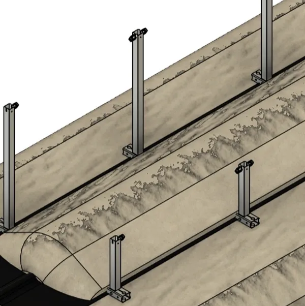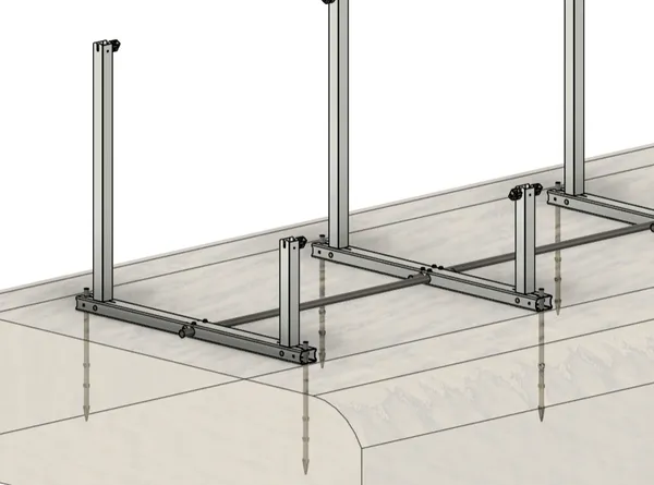 Our IR AnchorSpike™ Kit provides enough materials to install up to 10 solar modules with this mounting option, and comes with our specially designed 33 inch barbed aluminum spikes and a super strong two part epoxy. The IR AnchorSpikes have a hollow structure with open barbs that allow the epoxy to flow deep into the soil and create a solid anchor rated for over 1,000 pounds of uplift per spike. Once in place, each IR-45 frame is designed to clamp onto two AnchorSpikes when the carriage bolts at the ends are tightened, which allows for fast and easy leveling of the system. IR-AnchorSpike must be tested in soil at installation site to ensure it can withstand a minimum of 1,000 pounds of uplift.