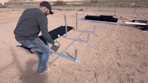 The IR-45 BallastRack System is the only solar module ground mount that is capable of racking solar modules of any size with no need for additional hardware. Each solar module that is racked sets the width between each frame section, and calculating space between frames is easy. Simply space the base tubes of the IR-45 Frames exactly 1 inch less than the width of your solar modules.