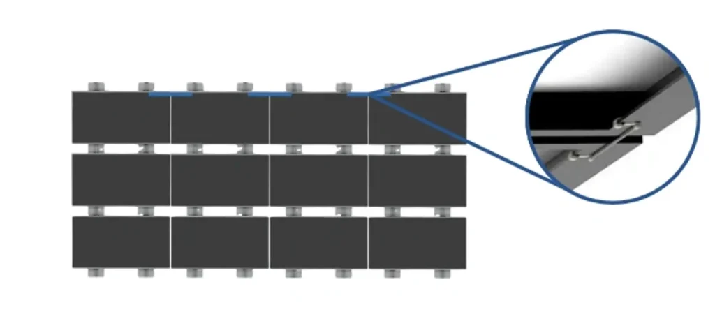 For bonding between rows of modules, we offer 8″ and 12″ IR-B1 Bonding Jumpers that are UL 2703 recognized. The bonding jumpers have small internal bonding barbs and they clamp to the bottom inner flange of the solar modules to provide bonding from row to row. Find out more